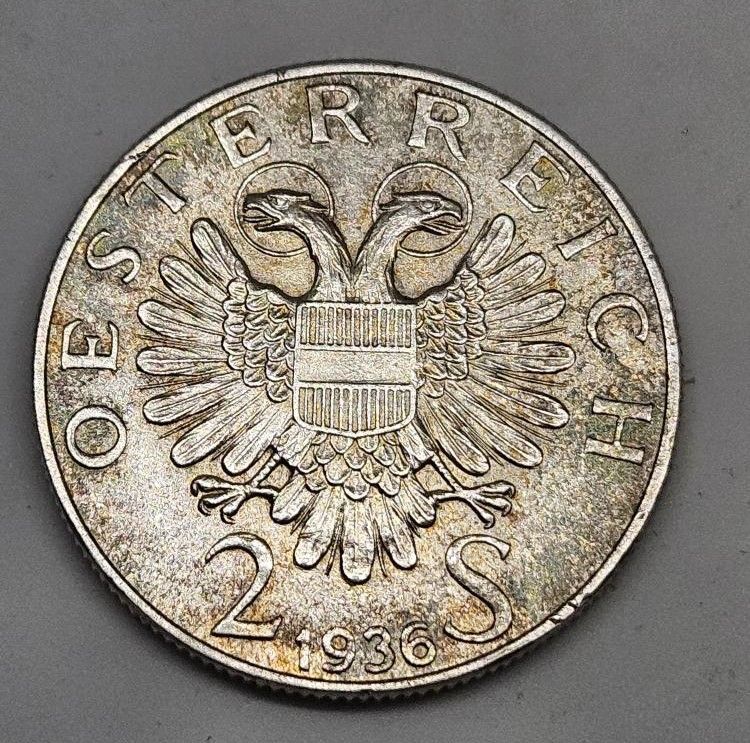 Rakousko 2 šilinky, 1936 - 200. Výročí úmrtí Prince Evžena Savojského - Ag 640/1000, 12g, 29,4mm