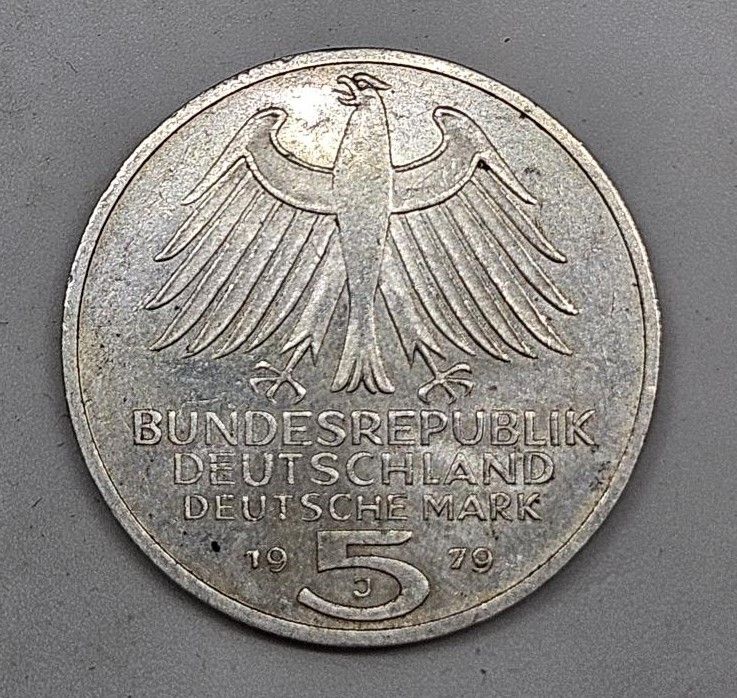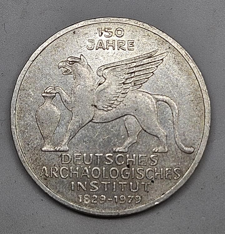 Německo 5 marek, 1979 150. výročí - Německý archeologický ústav - Ag 625/1000, 11,2g, 29mm