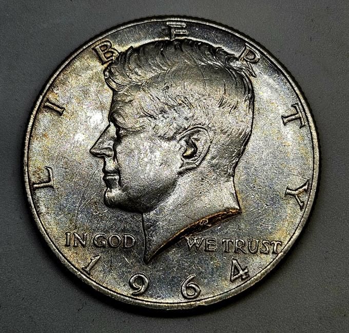 Spojené státy americké ½ dolaru, 1964 Kennedyho půldolar - Stříbro 0.900 Hmotnost (g) 12,5 Průměr (mm) 30,6 (2)