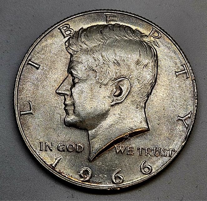Spojené státy americké ½ dolaru, 1966 Kennedyho půldolar - Stříbro 0.900 Hmotnost (g) 12,5 Průměr (mm) 30,6
