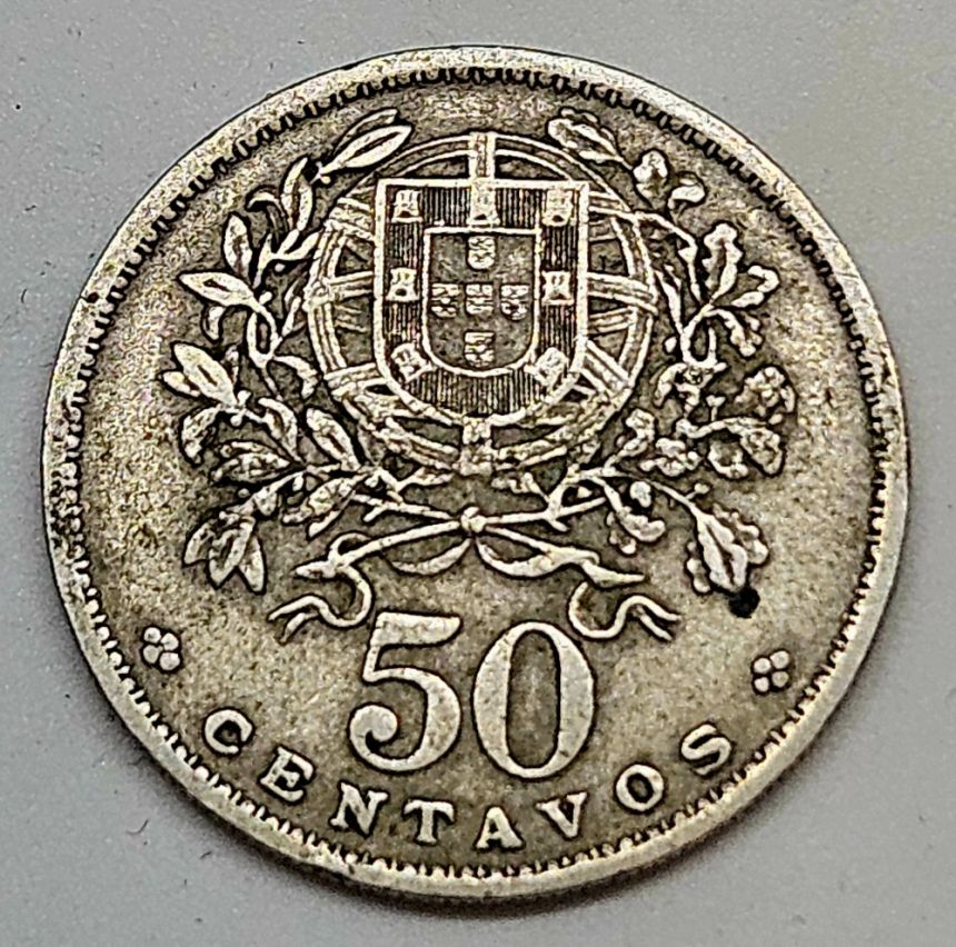 Portugalsko 50 centavos 1956 - Nikl-mosaz Hmotnost (g) 4 Průměr (mm) 23
