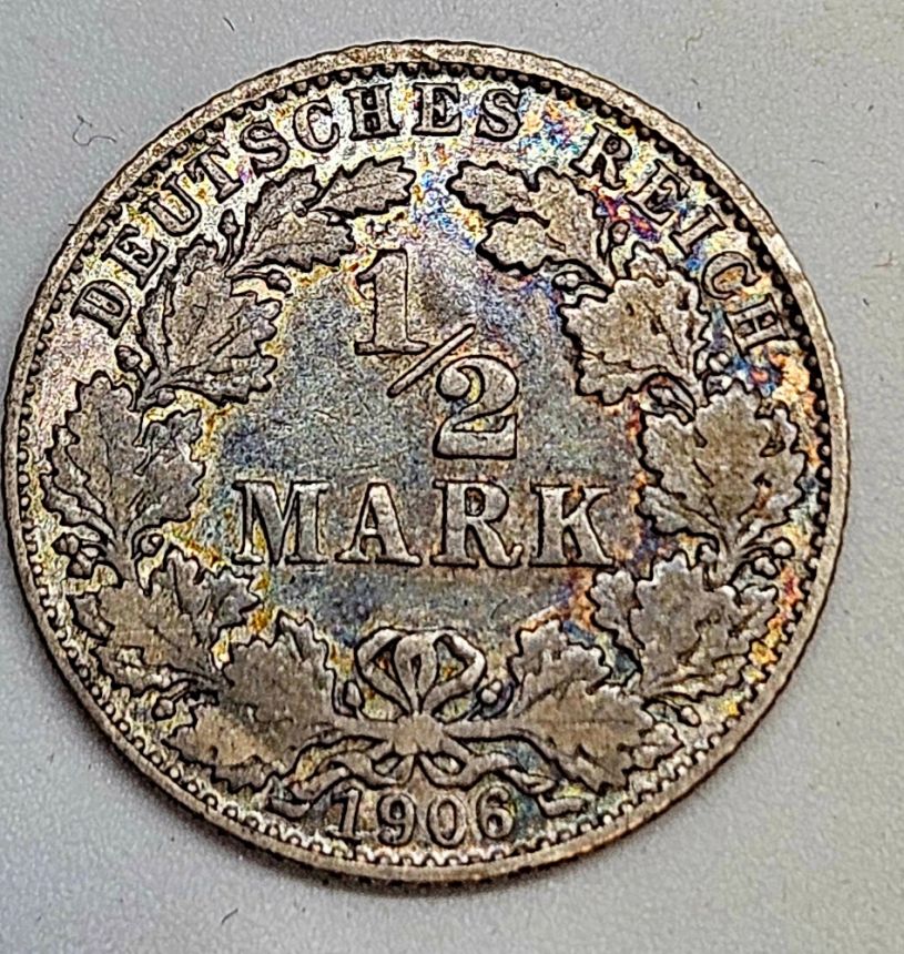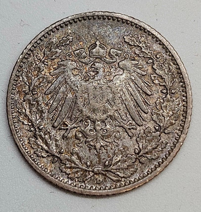 Německo ½ marka 1906 D - Stříbro 0.900 Hmotnost (g) 2,77 Průměr (mm) 20