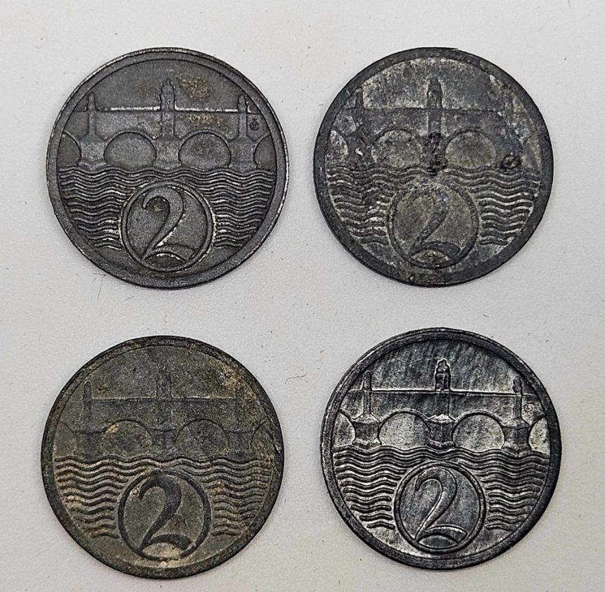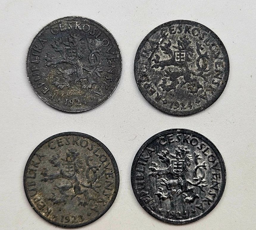 Lot 4x 2 haléř ČSR - 3x 1924 a 1x 1923 - Zn, 17mm, 2g