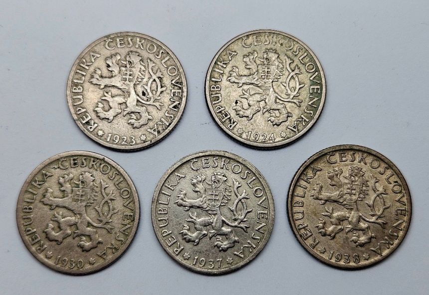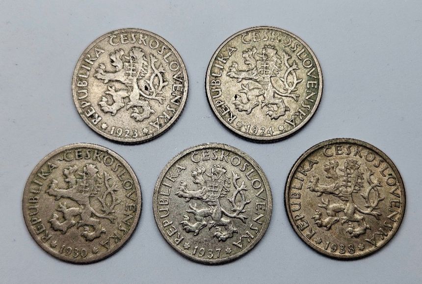ČSR - 1Kčs 1923, 1924, 1930 - vzácný ročník, 1937, 1938 - CuNi - 25mm, 6,67g