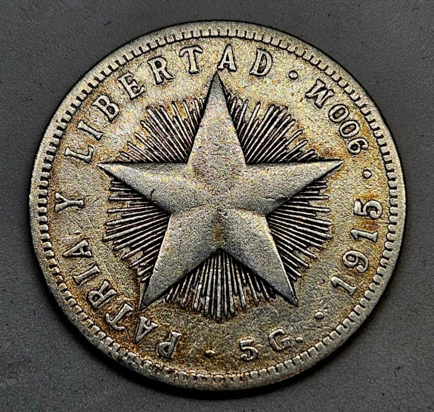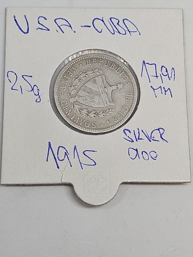 Kuba 20 centavos 1915 - Ag Stříbro 0.900 Hmotnost (g)5 Průměr (mm)23