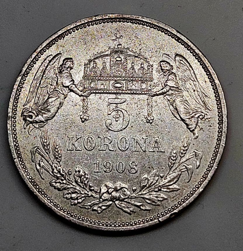5 Koruna 1908 K.B. - Uherská ražba Ag 900/1000, 24g, 36mm