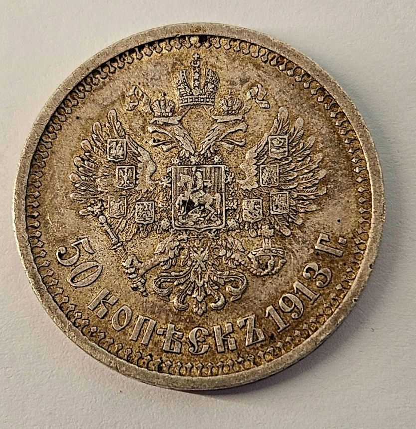 Rusko 50 Kopějka 1913 B.C. Petrohrad - Mikuláš II. Ag 900/1000, 10g, 27mm