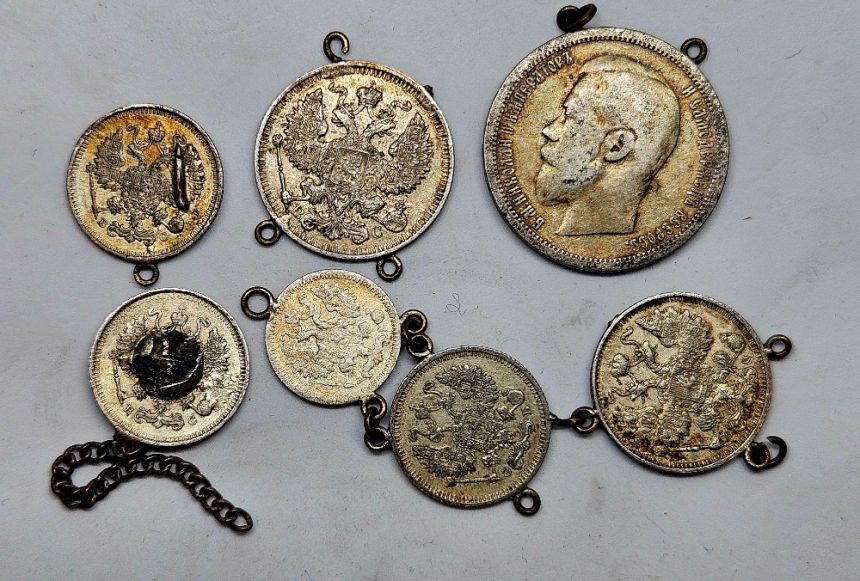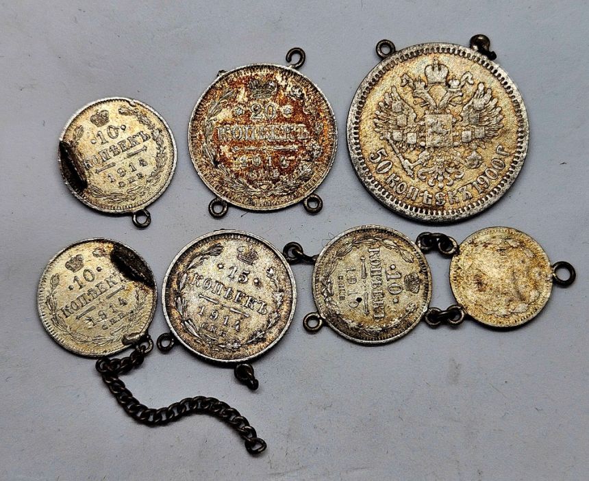 Rusko šperk - 50 Kopějka 1900 Mikuláš II. Ag 900/1000, 10g a další -) váha 23,85g viz foto.