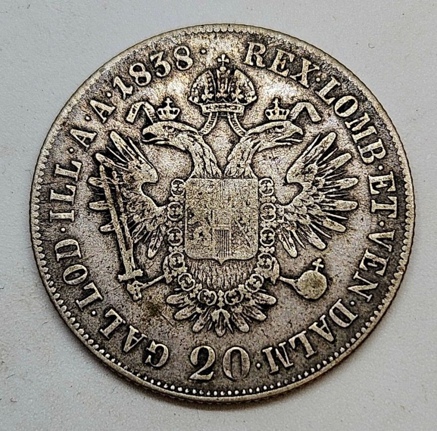Ferdinand V - 20 Krejcar 1838 A - Ag 583/1000,27mm, 6,6g