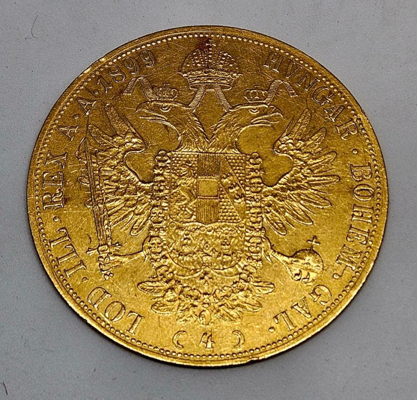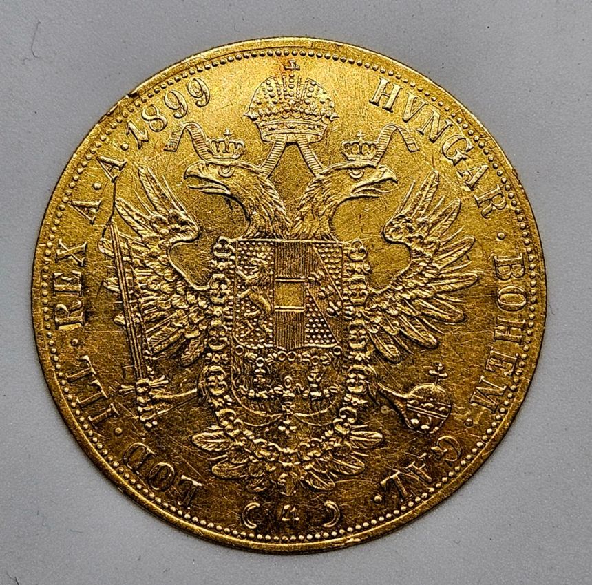4 Dukát 1899, 39 mm, Au 986/1000, 13,96g hrana vroubkovaná