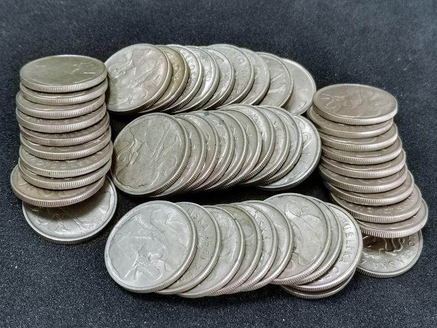Konvolut 50 Kusů 2 Kčs 1947 -1948, 6g, CuNi, 23.5mm, hrana vroubkovaná