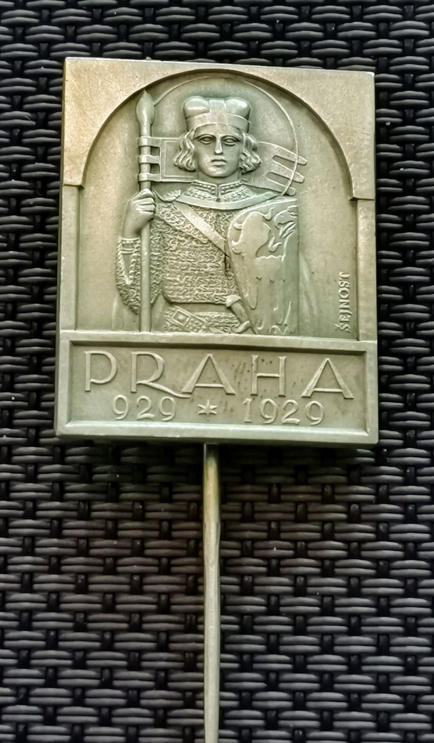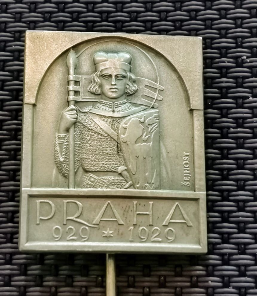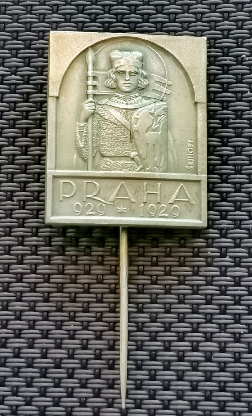 AR Odznak 1929 - K miléniu a k dokončení velechrámu sv. Víta. Sv. Václav s praporcem a štítem čelně, dole nápis a letopočty, Ag 0,987, 30x24 mm (10,80 g)