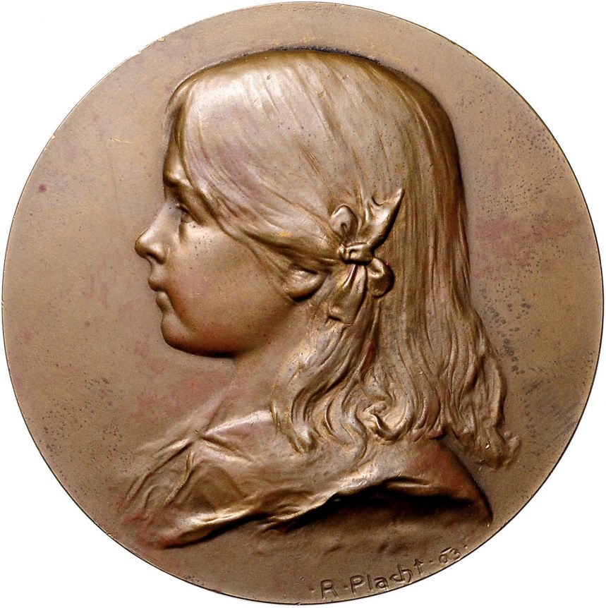 AE Medaile Hlava dívky, jednostranná, R. Placht, 1903, 65 mm, 92,36g