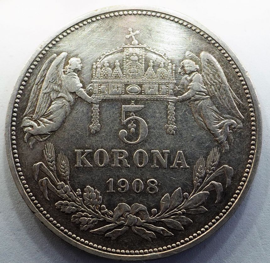 5 Koruna 1908 K.B. - Uherská ražba Ag 900/1000, 24g, 36mm (2)