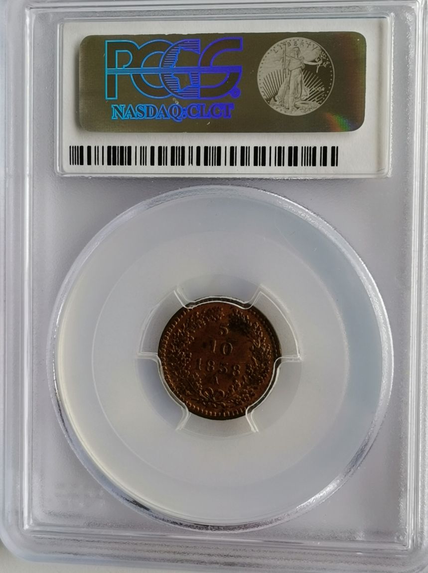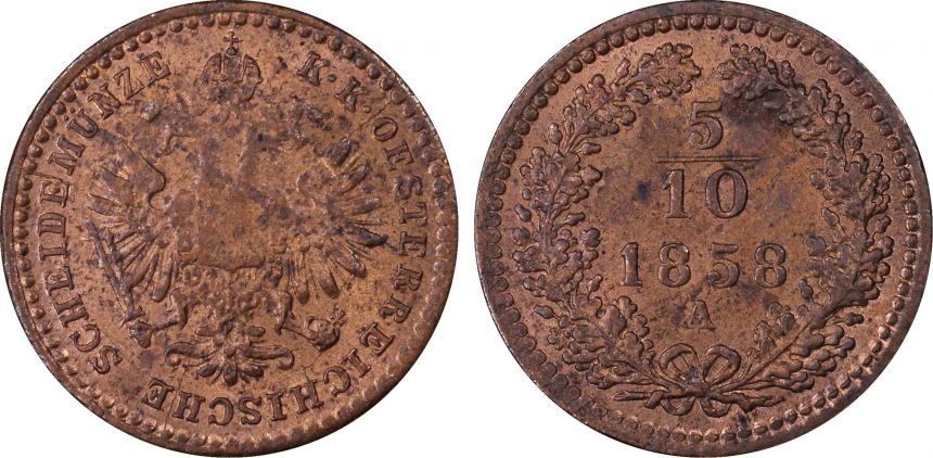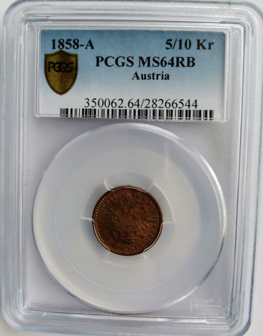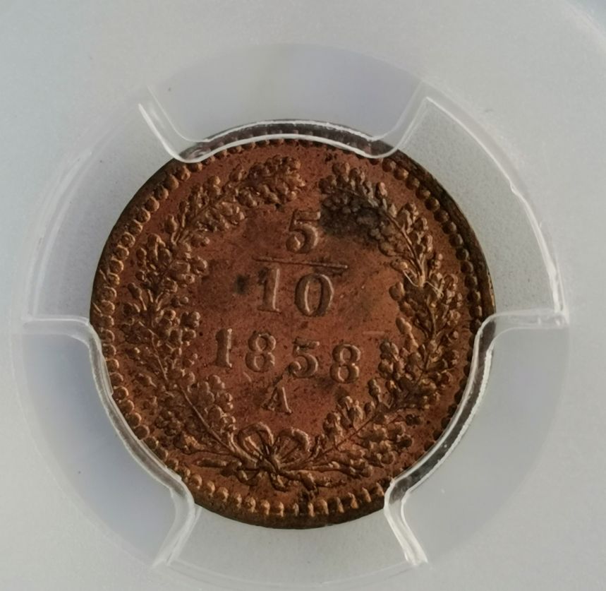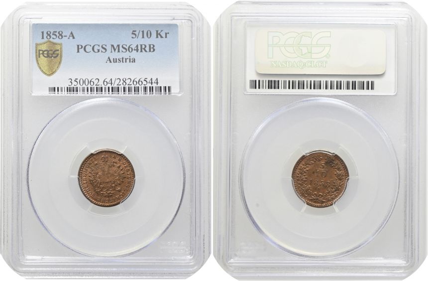 5/10 Krejcar 1858 A - Vídeň PCGS MS 64 RB