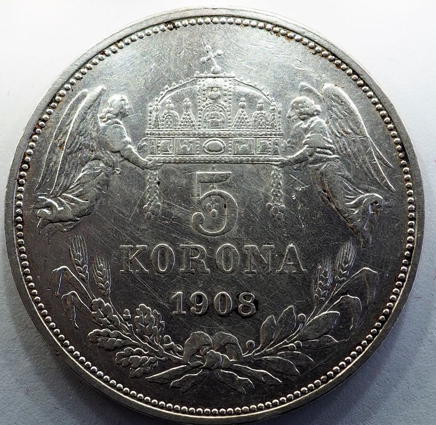 5 Koruna 1908 K.B. - Uherská ražba Ag 900/1000, 24g, 36mm (3)