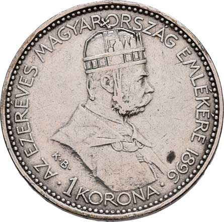 1 Koruna 1896 K.B. 1000. výročí Maďarů do Podunajské nížiny , Ag 835/1000, 5g, 23mm (3)
