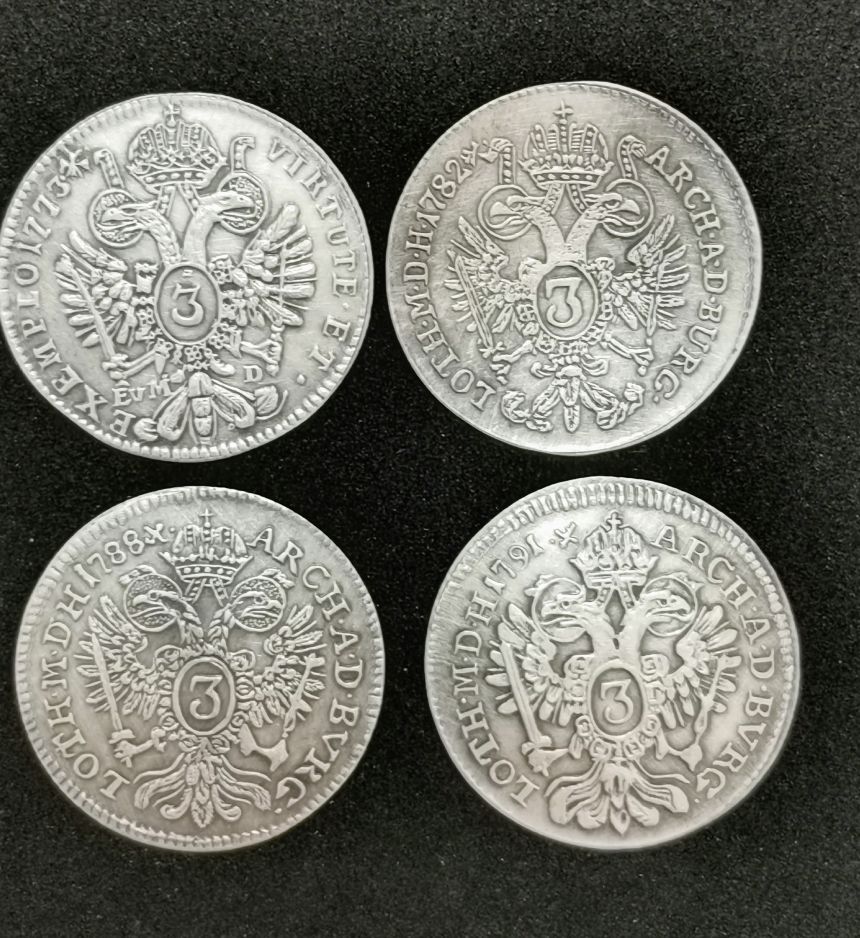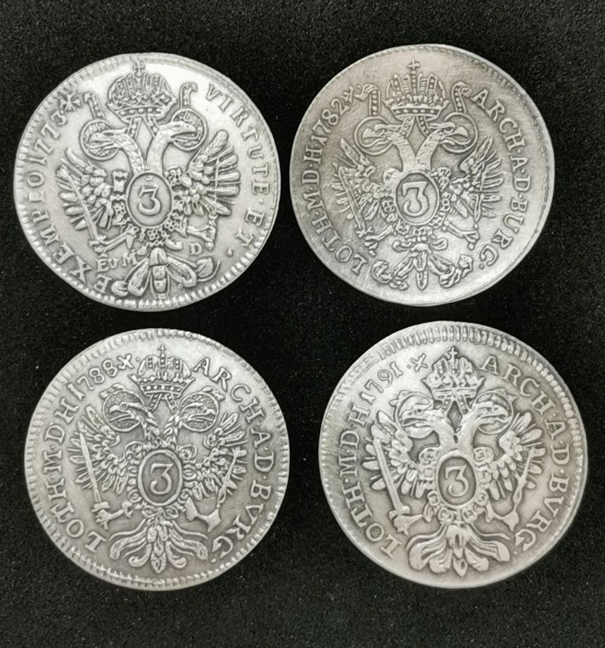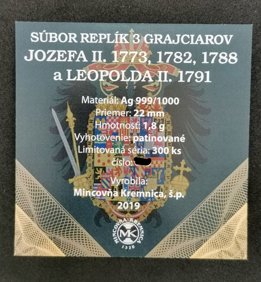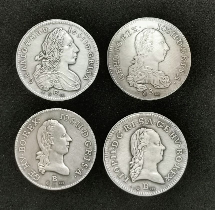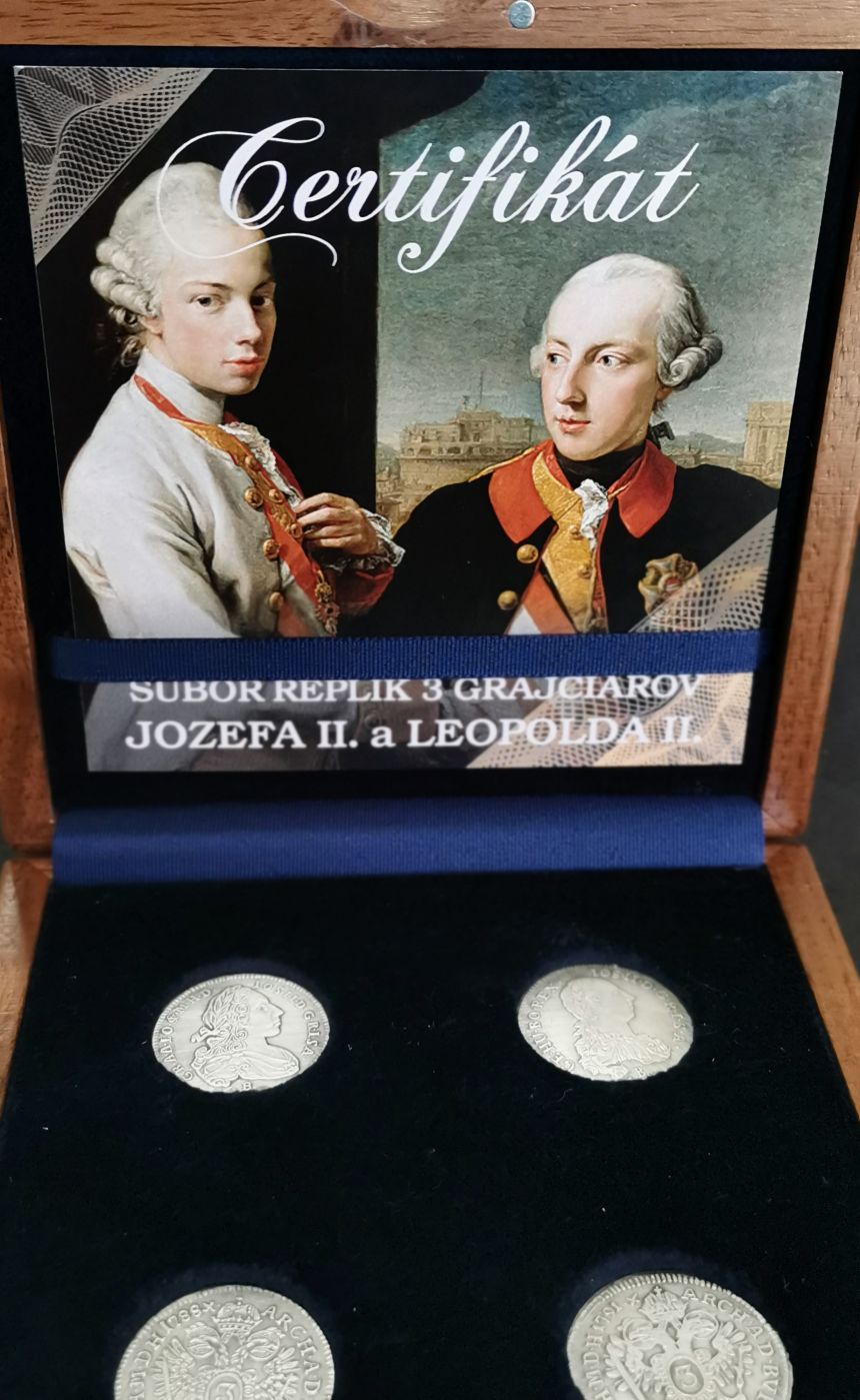 Sada 4 číslovaných Ag replik krejcarů Josefa II. a Leopolda II. Mincovna Kremnica