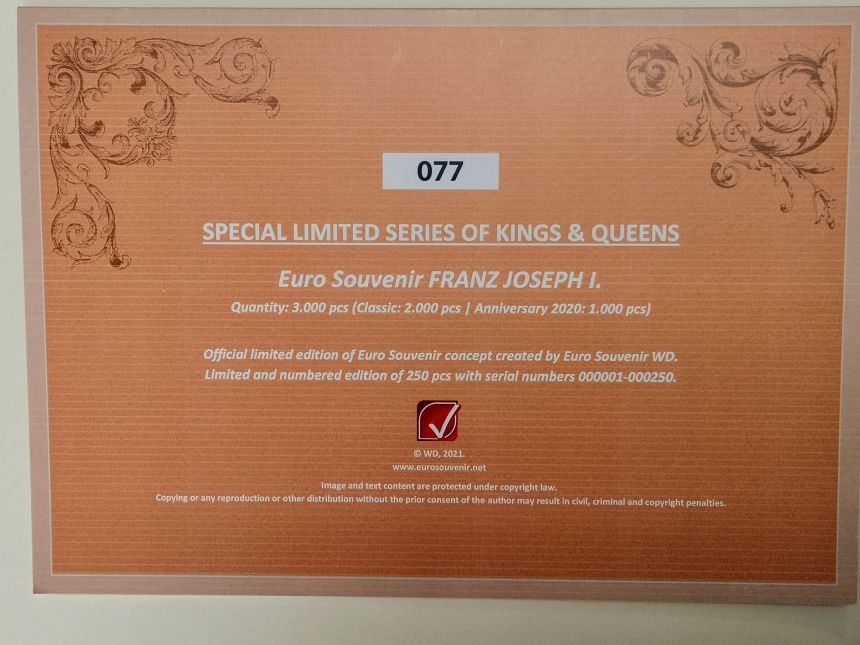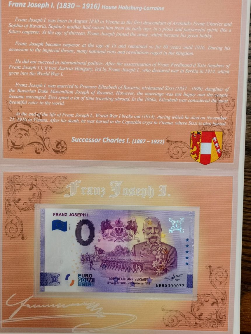 Limitovaná Euro bankovka František Josef I. č.77/250