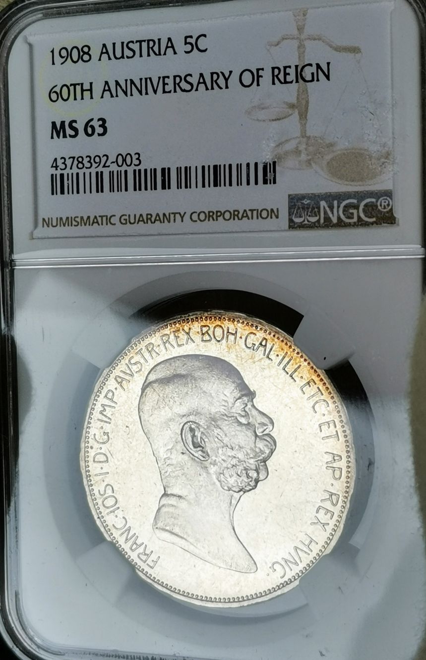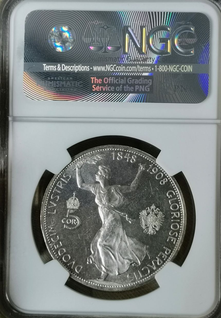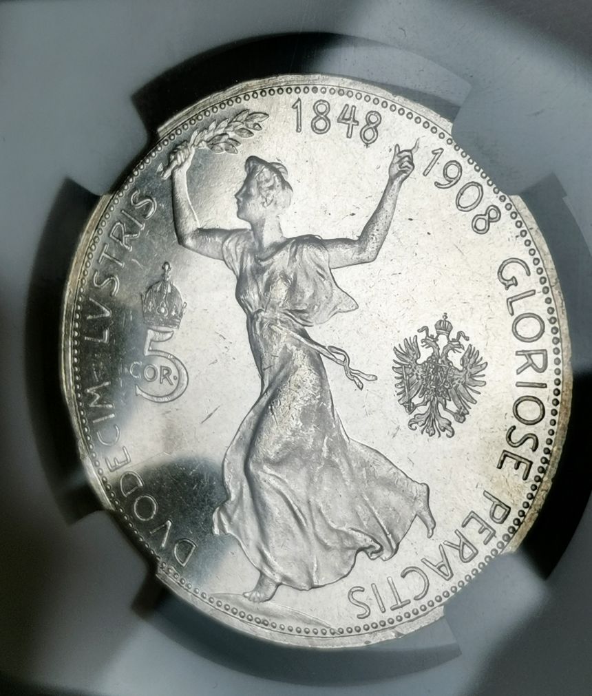 5 Koruna 1908 Jubilejní k 60 letům vlády FJI TOP STAV MS 63! Mimořádná zachovalost!