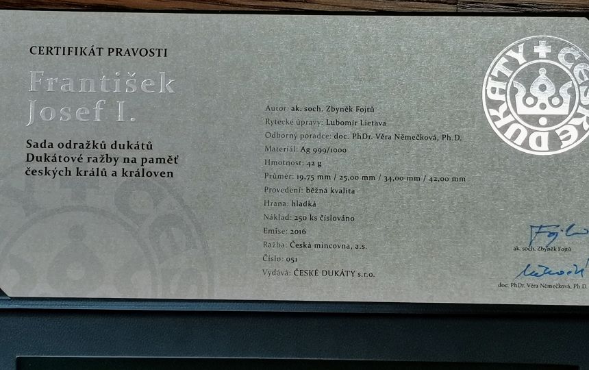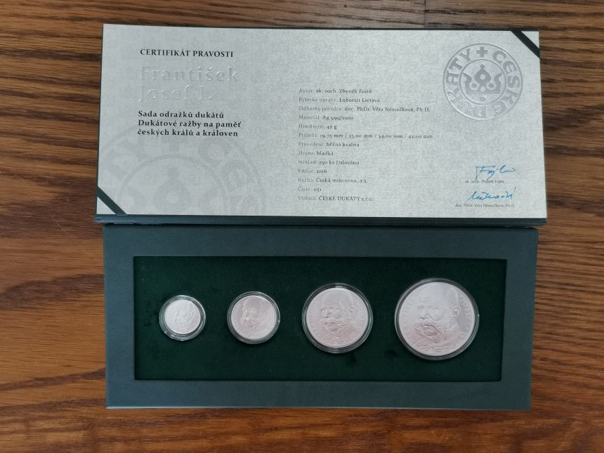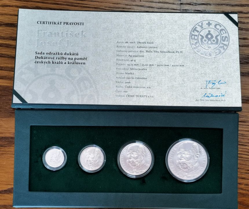 Sada Stříbrných Dukátů 1,2,5,10 číslo 51/250 autor Zbyněk Fojtů