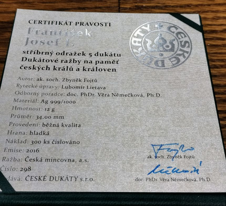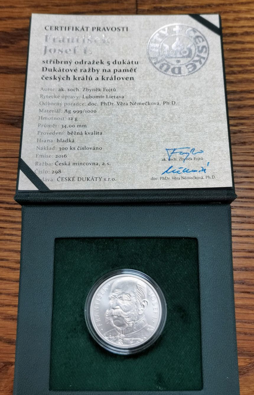 Stříbrný 5 Dukát FJI autor Zbyněk Fojtů Česká Mincovna 50ks LIMITACE