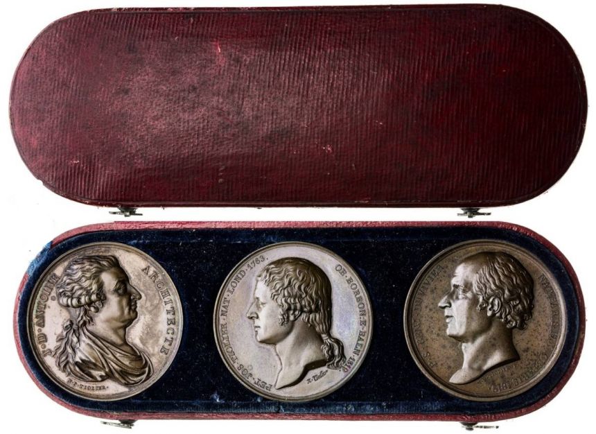 Sada AE medailí Francie (3 ks), Benjamin Duvivier, Tiolier, J.D. Antoine, Tiolier