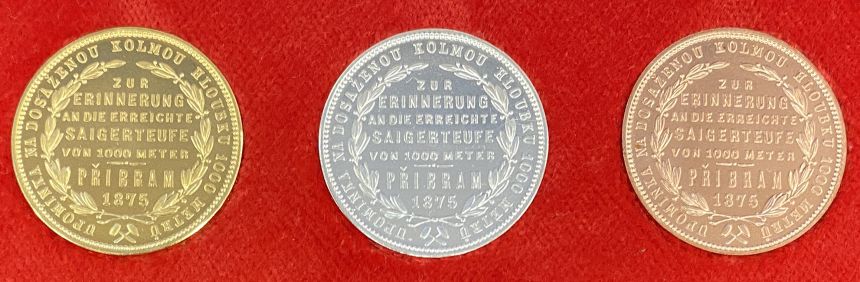 Legendární mince Františka Josefa I. k prouhlobení štoly na Březových Horách 1000m z roku 1875.