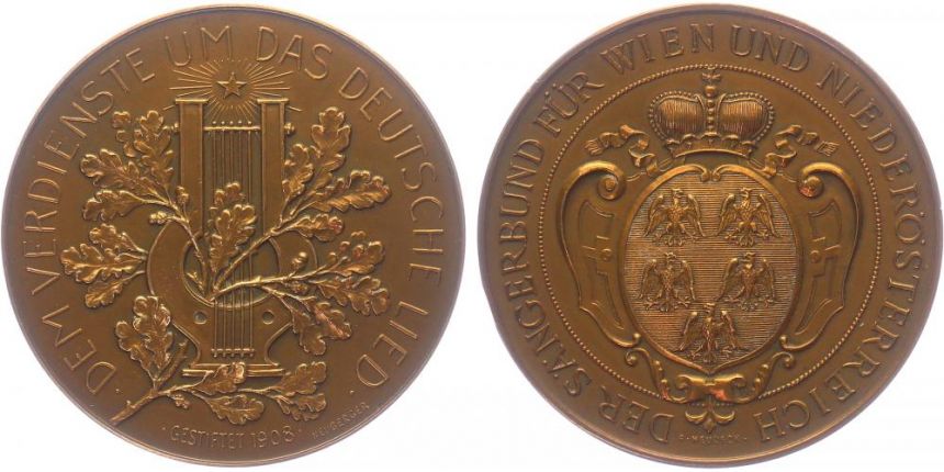 AE medaile Neuberger Rudolf - Pěvecký svaz pro Wídeň a Dolní Rakousko, zal. 1908. Bronz 46 mm