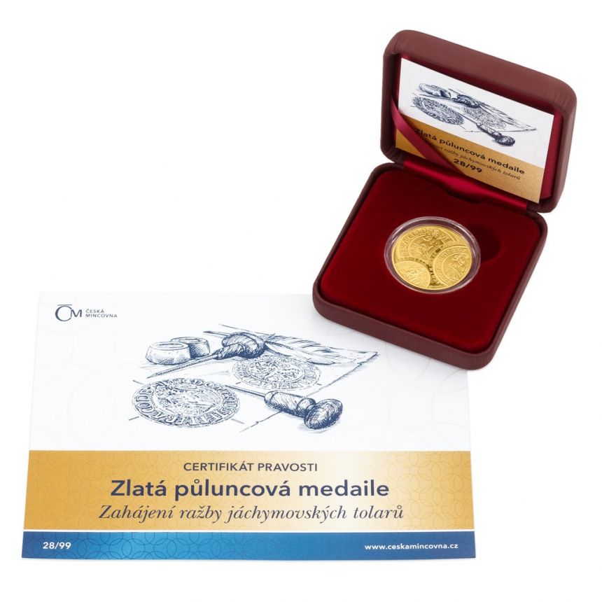 V roce 2020 si připomínáme 500. výročí zahájení ražby jáchymovských tolarů. Jako vzpomínka na tento milník českého mincovnictví vychází půluncová zlatá medaile České mincovny, která je součástí volného cyklu nejkrásnějších nerealizovaných návrhů přihlášených do soutěží České národní banky.